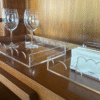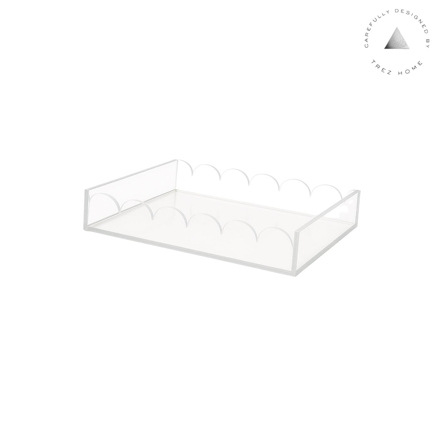 Desenvolvida em acrílico cristal, a Coleção Nuvem combina bordas onduladas com linhas retas, criando um contraste harmonioso que une delicadeza orgânica e contemporaneidade. A bandeja M foi pensadas para acompanhar diferentes momentos da casa: perfeitas para servir, organizar, compor lavabos, bares, aparadores e até mesmo decorar.