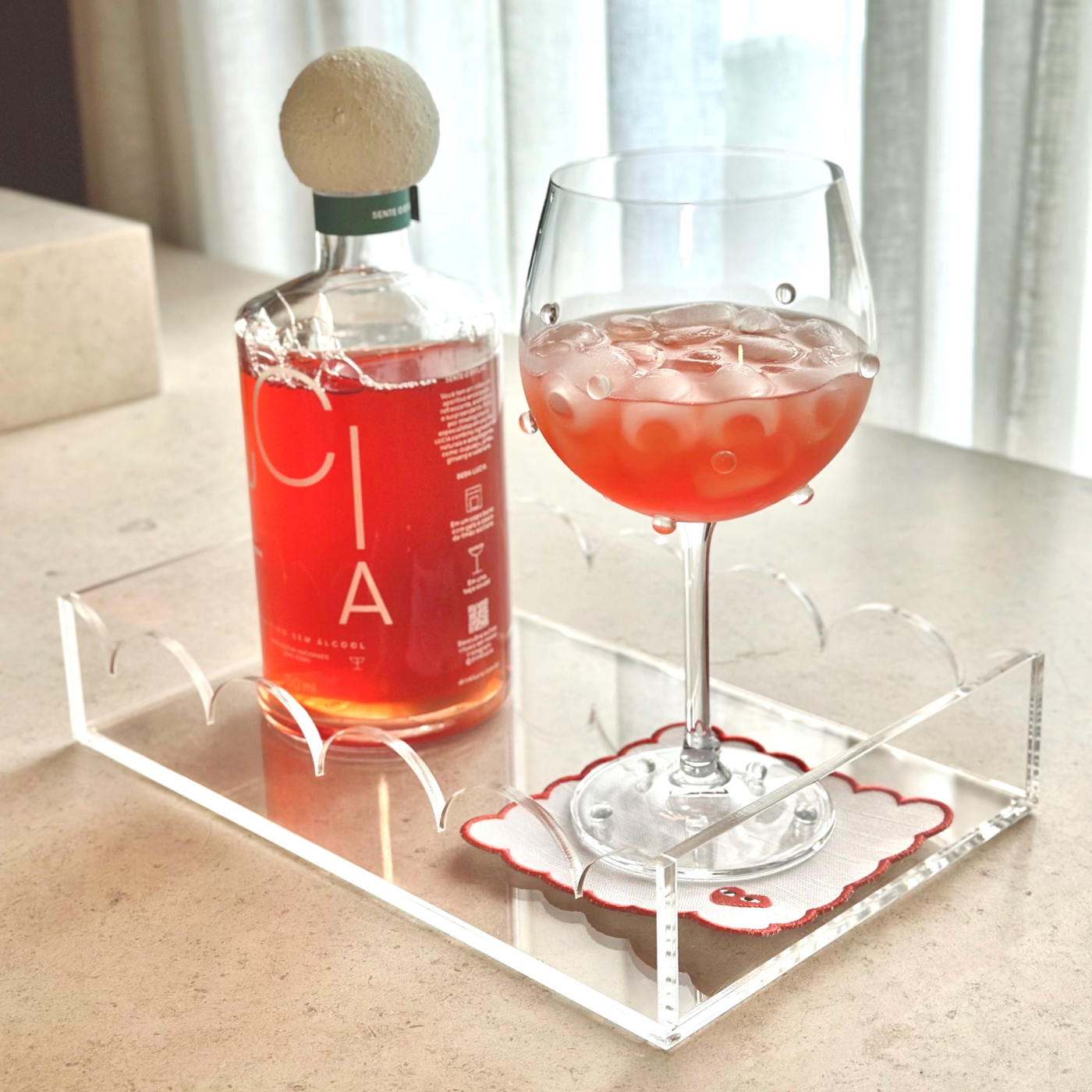Desenvolvida em acrílico cristal, a Coleção Nuvem combina bordas onduladas com linhas retas, criando um contraste harmonioso que une delicadeza orgânica e contemporaneidade. A bandeja P foi pensadas para acompanhar diferentes momentos da casa: perfeitas para servir, organizar, compor lavabos, bares, aparadores e até mesmo decorar.