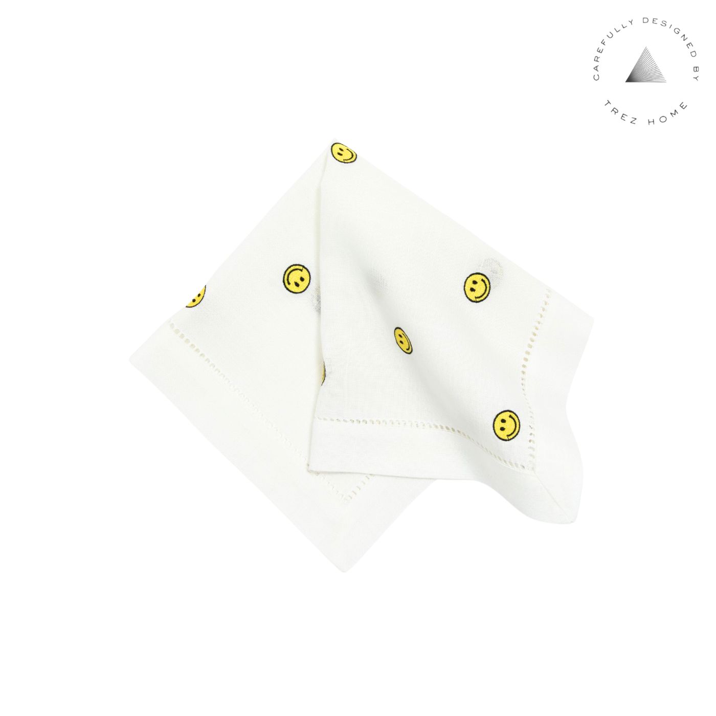 Set com 02 guardanapos em linho branco com acabamento em ponto ajour e bordados de smile.