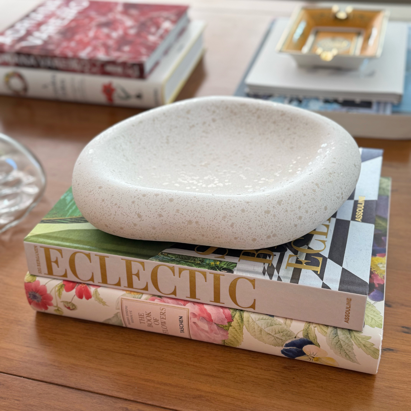 Travessa Decorativa Solis em Cerâmica apresenta design orgânico e abaulado. Peça versátil que organiza com funcionalidade, ideal para mesas, aparadores ou escritórios. Perfeita para compor a decoração.