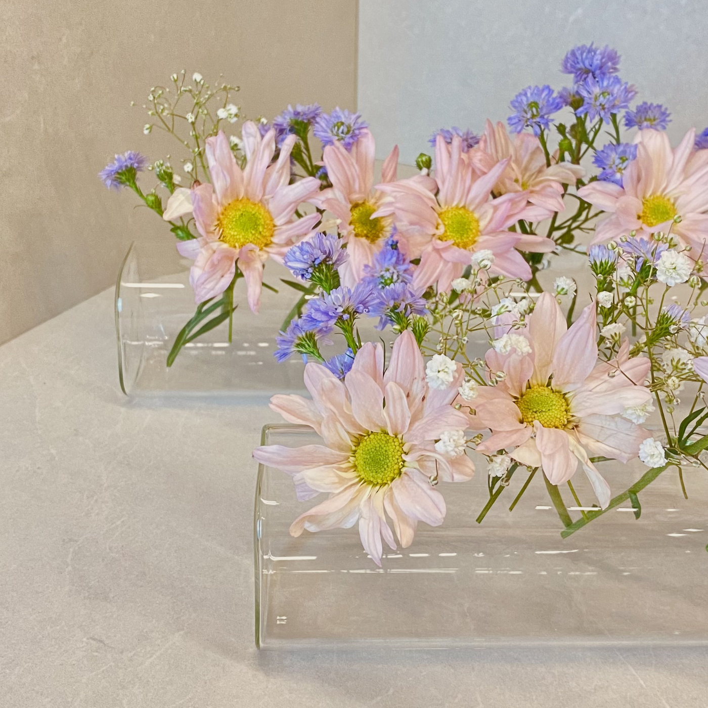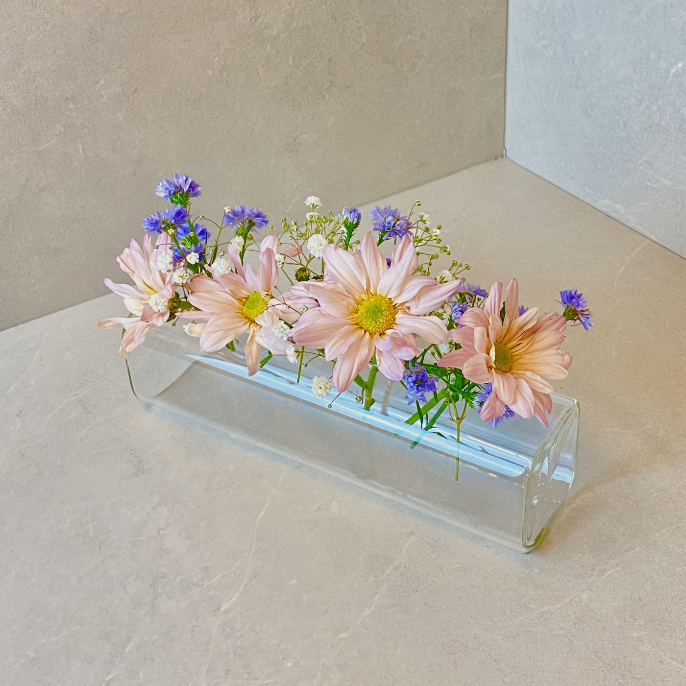 Vaso Horizontal Armoni P feito em vidro borossilicato, perfeito para quem ama decorar com leveza e criatividade. Possui um design alongado na horizontal e conta com 4 furos circulares, ideais para acomodar flores ou criar composições com água e elementos decorativos.